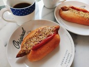 無添加粗挽きウィンナー(国産豚肉、塩、香辛料、海藻粉末、自然由来デキストリン、砂糖、魚醤)、国産産小麦(内全粒粉40%)、牛乳、粒マスタード(マスタードシード、醸造酢、塩、唐辛子粉末)、きび砂糖、国産バター(よつ葉)、あら塩、無添加イースト、有機ケチャップ