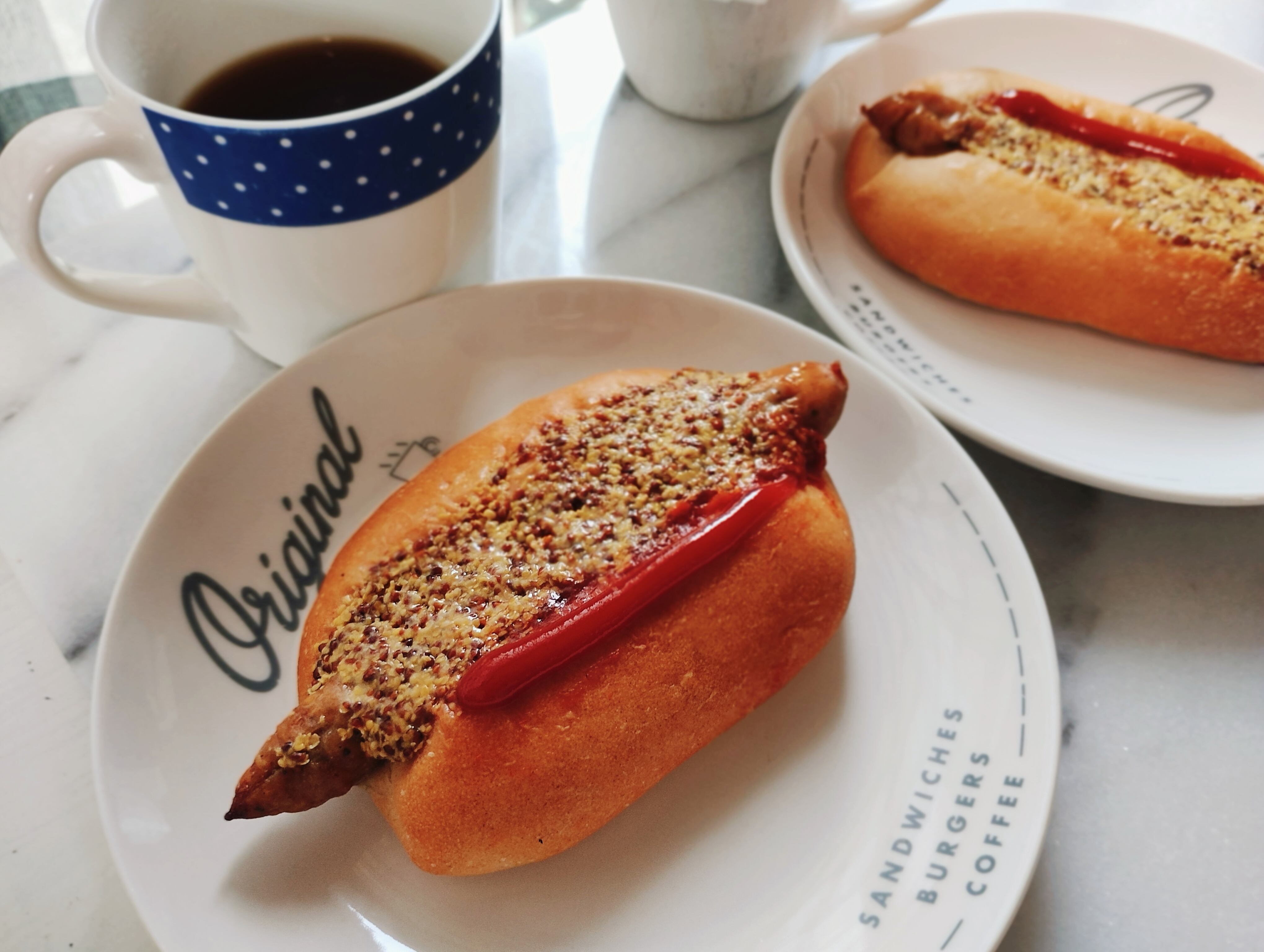 「無添加ウィンナーパン」粒マスタード、有機ケチャップ付き